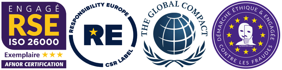 Nos certifications interconnectées, complétées en 2025 par l’obtention du label AFNOR Engagé RSE niveau Exemplaire (ISO 26000), consacre une démarche globale et cohérente, à la croisée des enjeux  sociétaux, éthiques et technologiques.