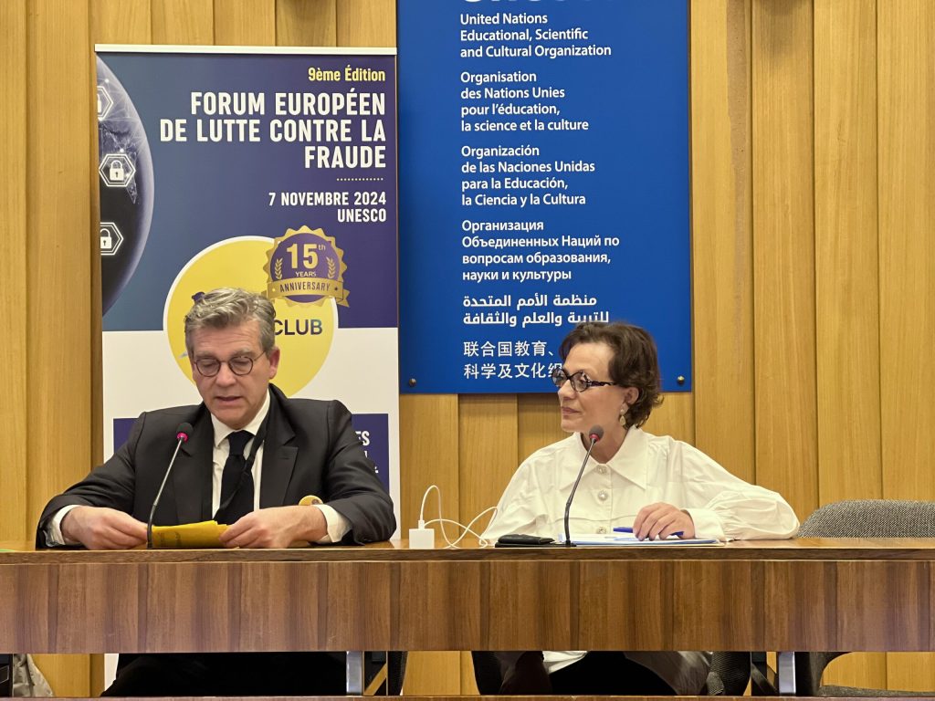 Arnaud Montebourg et Marie Azevedo, présidente de l’association EFP RESOCLUB lors du 9ème Forum Européen de lutte contre la fraude à l’UNESCO. L’adhésion à l’association European Fraud Prevention RESOCLUB donne droit à la participation au Forum